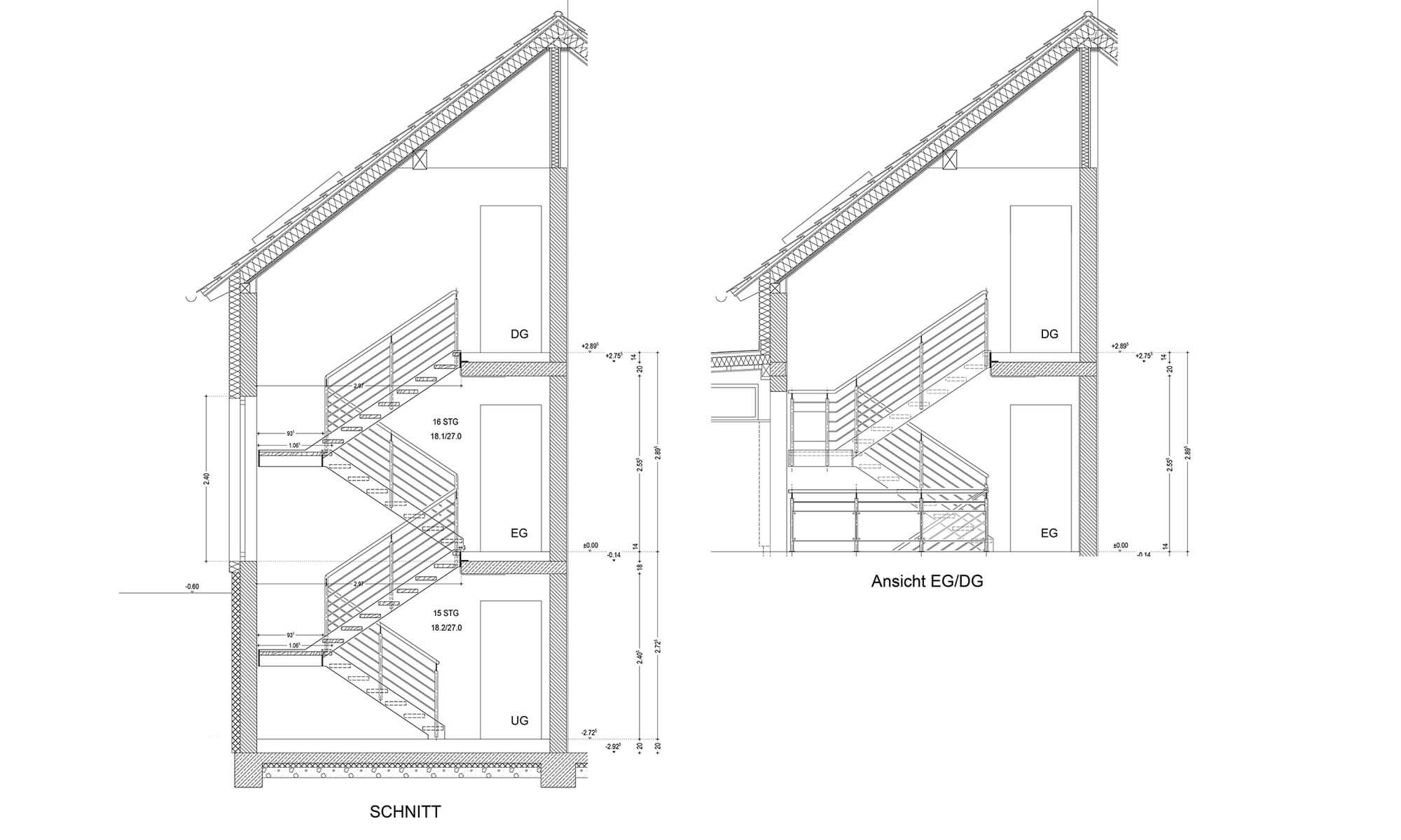 Neubau eines Einfamilienwohnhauses mit Einliegerwohnung und Carport. Ausführung in konventionellem Mauerwerksbau mit Keller-, Erd- und Dachgeschoss. KfW 70 StandardOffener Wohn-Essbereich mit Terrasse im Süden und Westbalkon. Treppenhaus offen mit Galerie, vorgelagerter Eingangsbereich mit überdachten Zugang zu CarportRäume im Dachgeschoss mit offenem Dachraum, Gaube nach SüdenLW-Wärmepumpe und Solaranlage für BrauchwassererwärmungDer Gartenbereich ist terrassiert angelegt, im Osten befindet sich der Zugang zur Einliegerwohnung.| BV: | Neubau eines Einfamilien - Wohnhauses mit Einliegerwohnung und Carport |